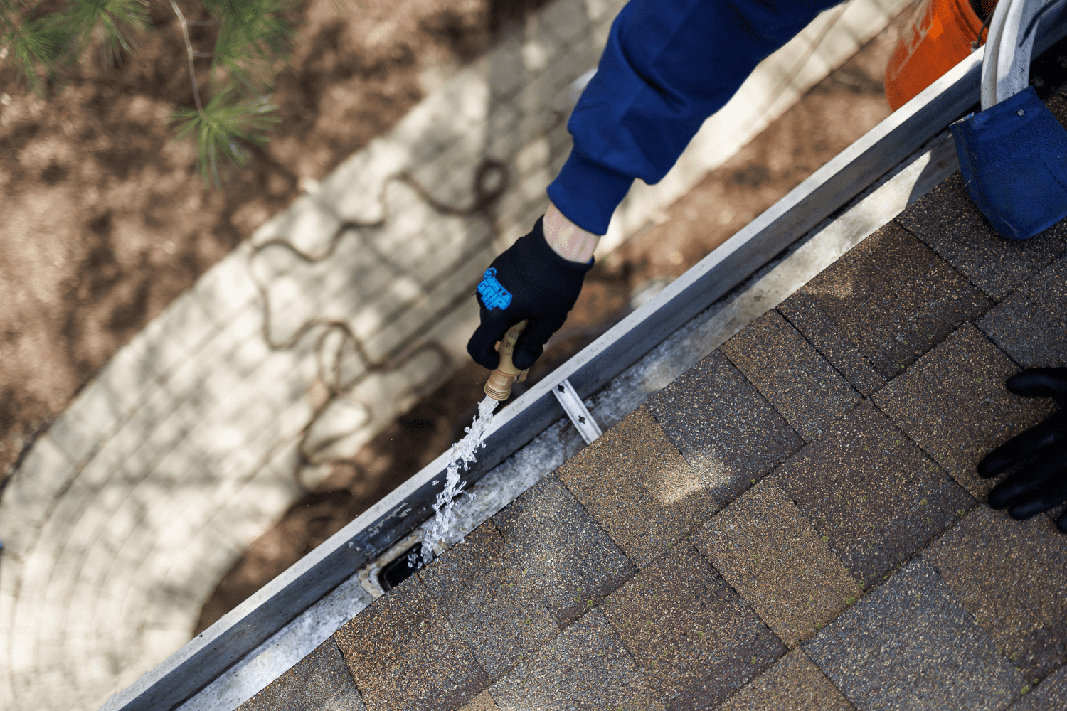 We can then pick the date and time to meticulously remove all debris in and around your gutters, flush and clear every downspout, and fix minor issues on the spot.